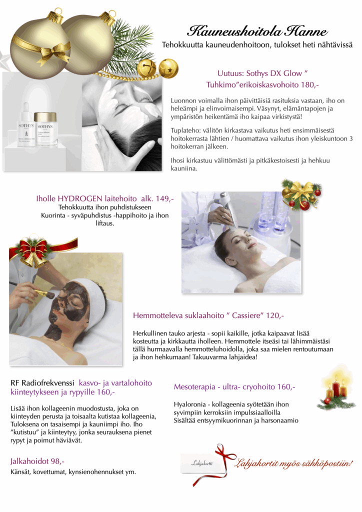 Tämän hoidon yhteydessä lahjaksi ultrakosteuttava erikoisnaamio!